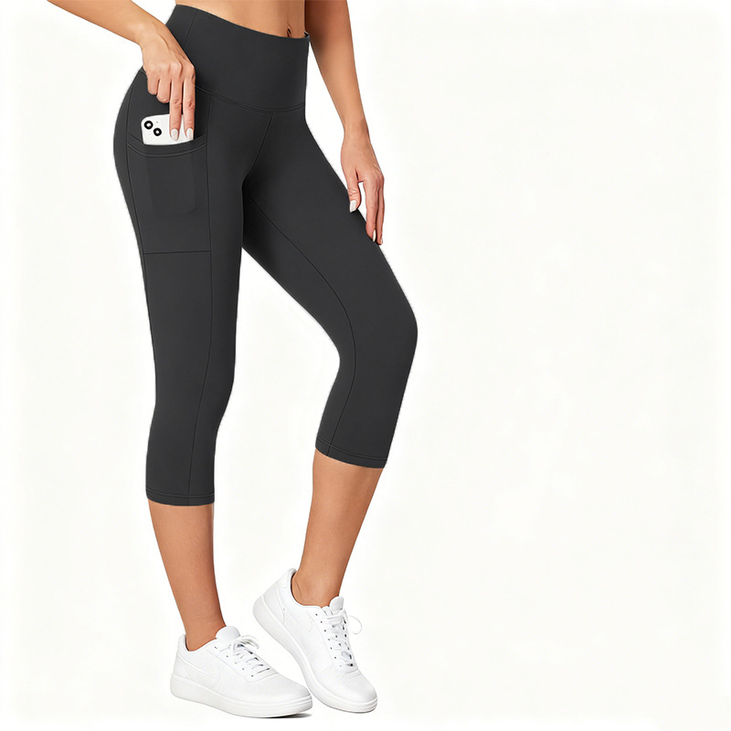 Amazon Cross-Border European and American Pocket Cropped Yoga Pants for Women Spring and Summer High-Waisted Tummy Control Tight Cropped Leggings